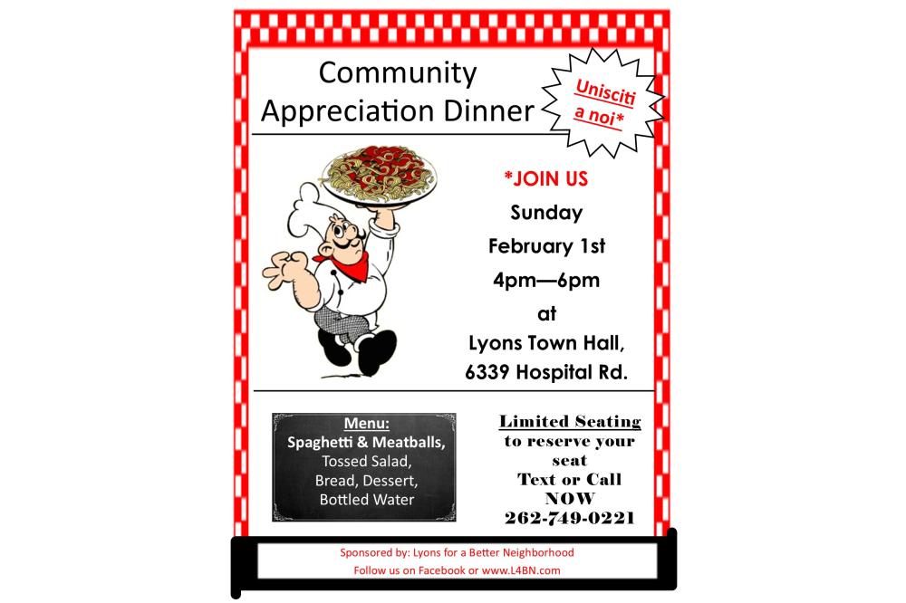 Join us for a complimentary Community Appreciation Dinner.