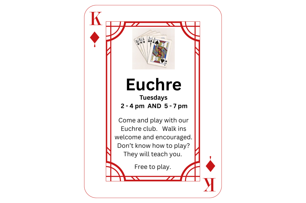 Come and play with our Euchre Club. A classic card game fun to play!