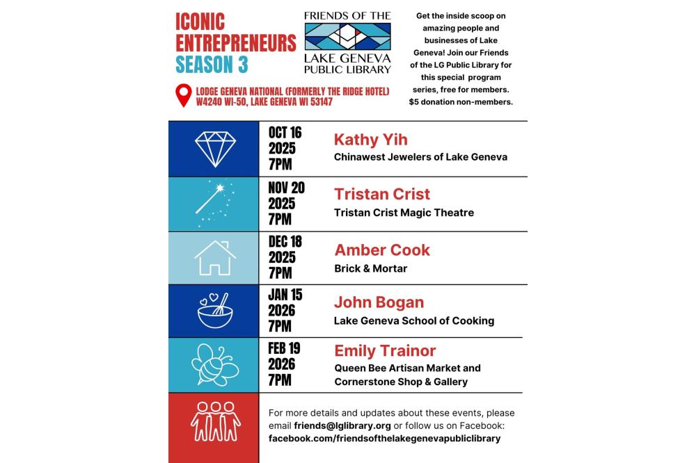 Presented by the Friends of the Lake Geneva Public Library, this inspiring series features candid interviews with some of Lake Geneva’s most iconic and innovative business owners.