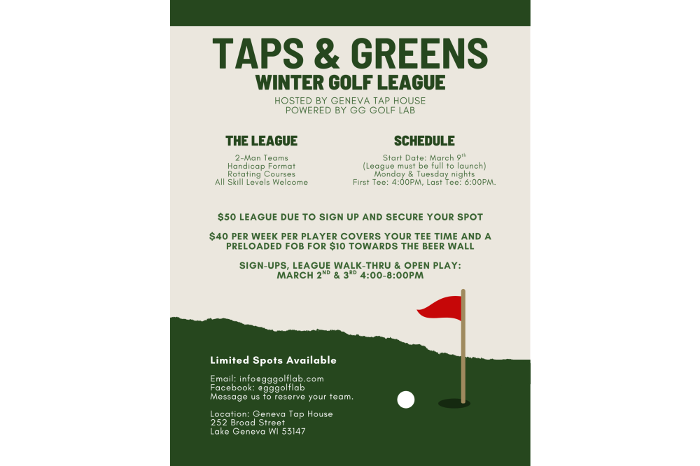 Taps & Greens is the first golf simulator league hosted at Geneva Tap House. Play the greens, finish at the taps!