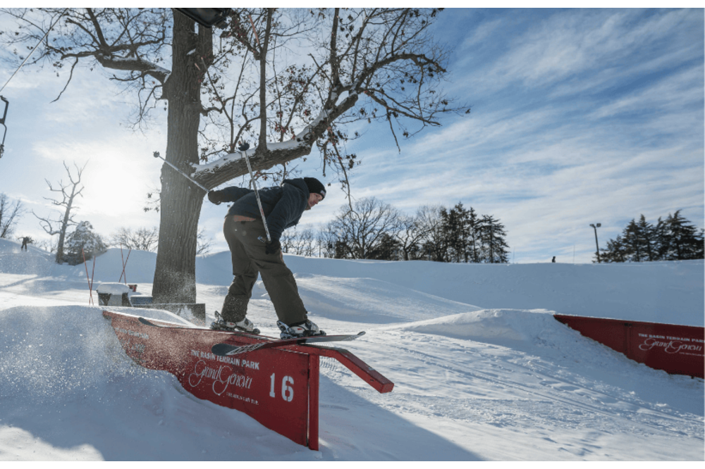 That spirit is deeply connected to our own history. Professional skier and Mountain Top native Ashley Battersby grew up here, riding fast laps in the terrain park while her parents worked ski patrol and taught on the hill. The short lift lines and quick runs at Grand Geneva allowed Ashley and her peers to get endless repetitions, pushing limits and progressing together—an environment that helped shape a future pro and foster a tight-knit local community of talent. Reviving the Hot Dog Open pays homage to that era, when the terrain park was the center of gravity and progression culture thrived.