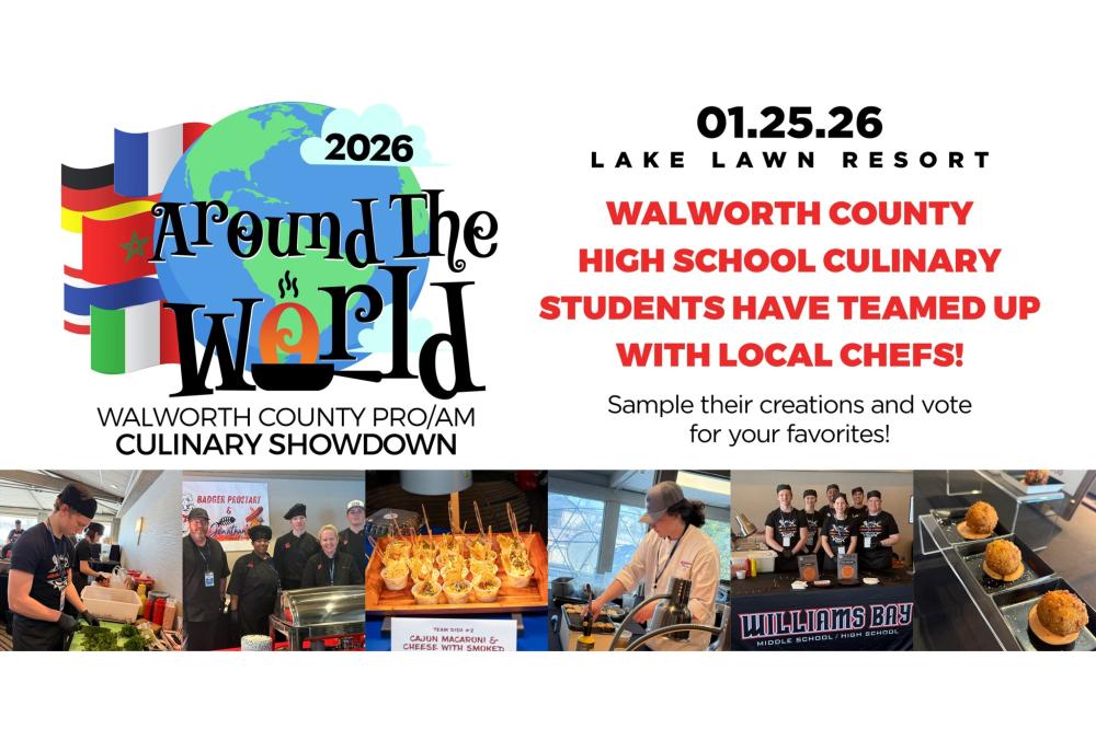 Join us for WCEDA's second annual Walworth County Pro-Am Culinary Showdown!Featuring teams of Walworth County high school culinary students and professional chefs! Taste the creativity as all 11 teams present one unique dish each. Enjoy the samples, and vote for your favorites!!!-------------**THEME ANNOUNCEMENT**