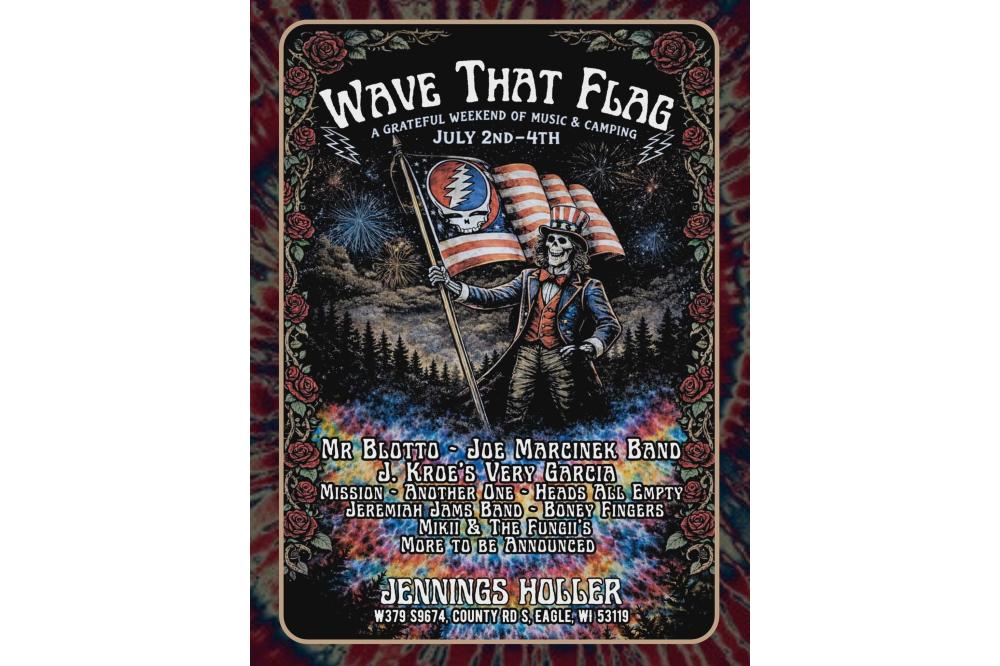 Join us this July 2nd through the 4th for Wave That Flag, a three day celebration of the timeless music, spirit, and culture of the Grateful Dead. This is more than a festival; it is a gathering of heads, hearts, and souls coming together under the stars to honor the songs that changed generations. We are bringing together the best Grateful Dead artists from all across the Midwest, delivering everything from faithful recreations to deep exploratory jams inspired by the Dead’s legendary catalog. Expect long grooves, cosmic solos, and that unmistakable moment when the music takes over and the crowd becomes one