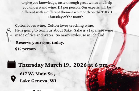 The only Wine bar and Retail store in Lake Geneva! We offer a selection of 800+ wines, craft spirits, craft soda, and craft beer. We have a relaxing patio or lounge to enjoy a flight or glass of wine or shop and take a bottle or two home. We have New Glarus Beer!